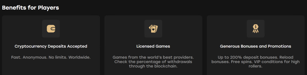 - Stands out with its innovative loyalty program, the Fairspin TFS Token, providing cashback, staking opportunities, and redeemable rewards.